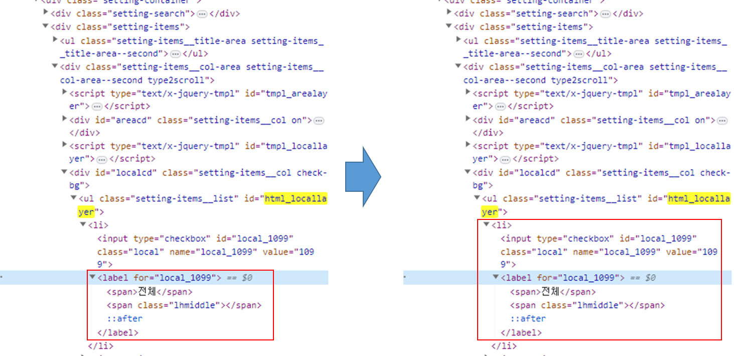 1. 오류메세지 Message: element click intercepted: Element ... is not clickable at point (1285, 836). Other element would receive the click: 2. 문제가 되는 코드 ul_gugun = findById('html_locallayer') il_gugun = ul_gugun.find_elements(By.TAG_NAME,'li') list_gu1 = random.randrange(0,len(il_gugun)) findByXPath(f'//*[@id="html_locallayer"]/li[{list_gu1}]/label').click() 3. 해결방법 태그의 부모태그인 를 클릭 하도록 수정 테스트 용 크롬이 나왔..
